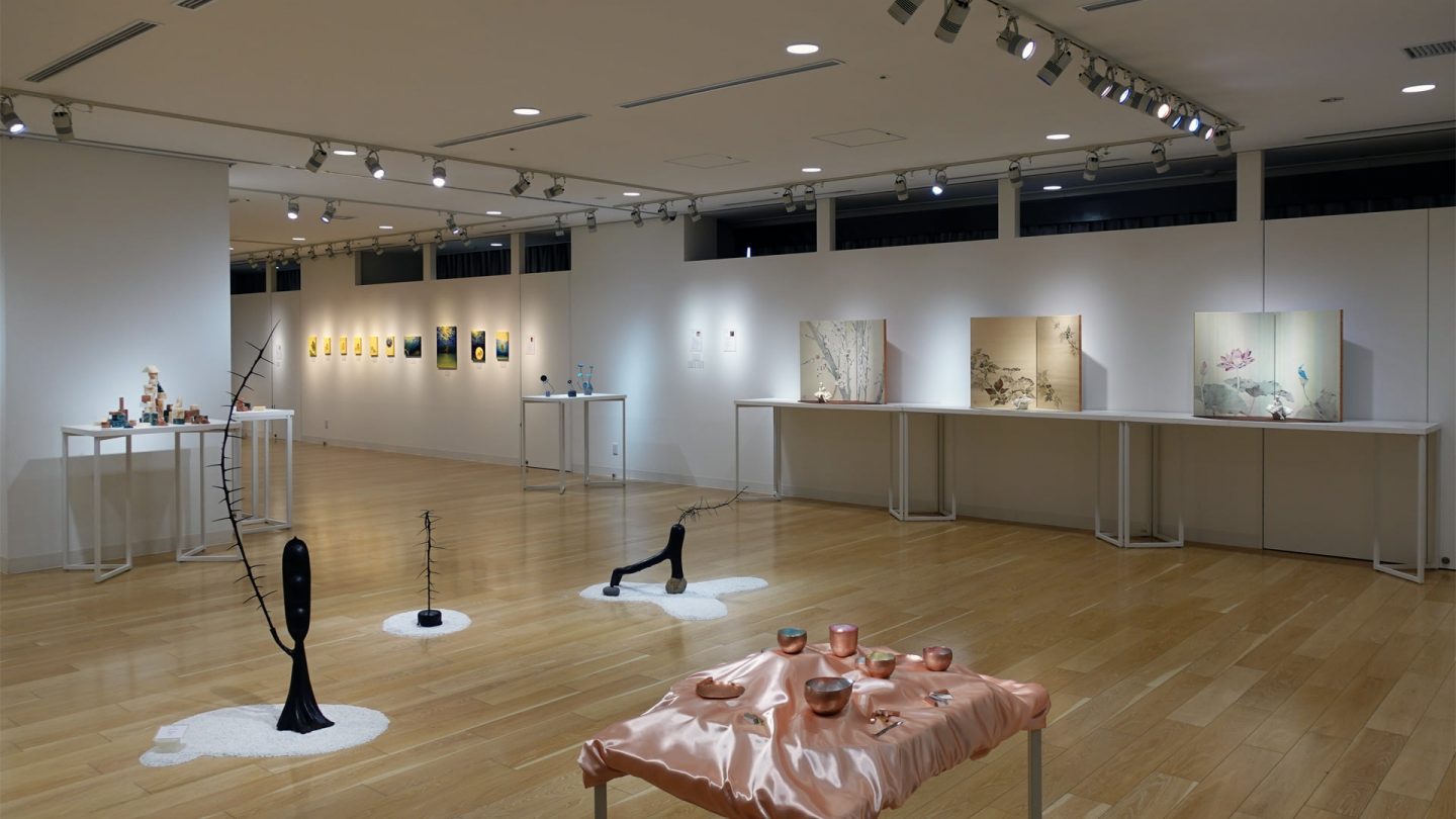日本画、彫刻、彫金、刺繍など、手法は違えども、それぞれ自らの表現にひたむきに向き合う作家たちのエネルギーが化学反応を起こし、まばゆい結晶が生まれる。